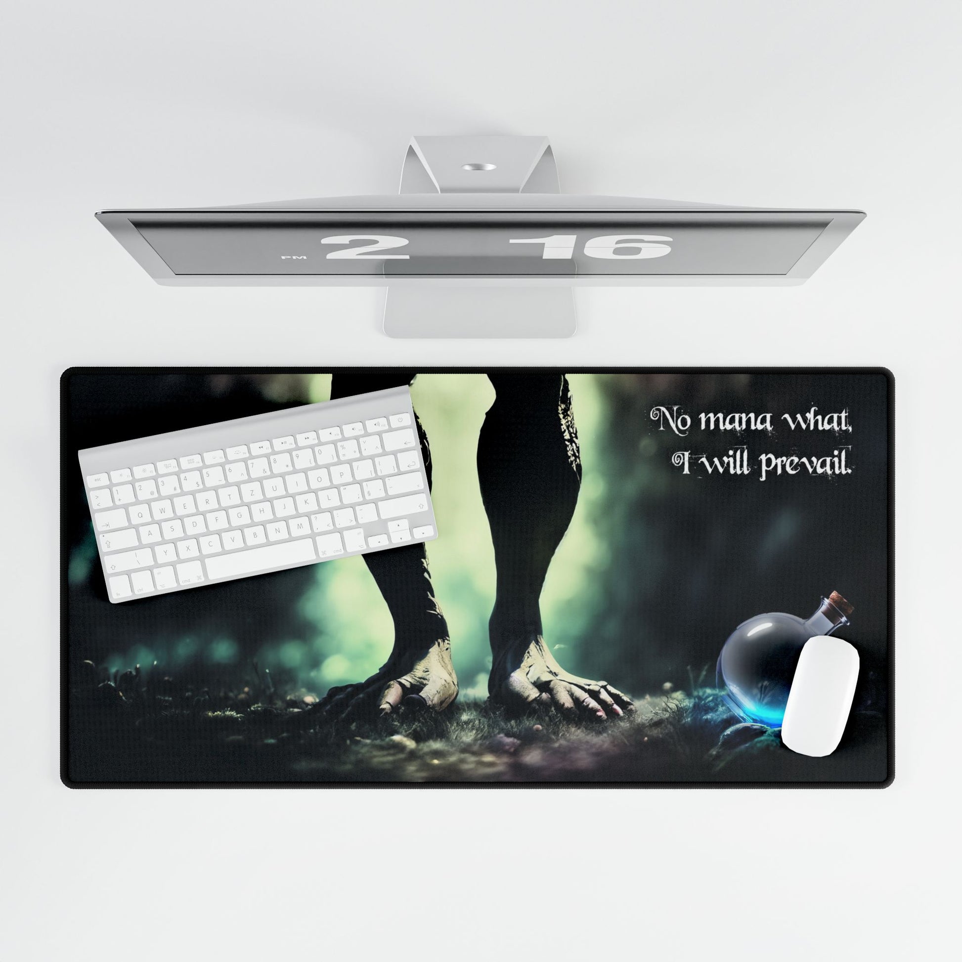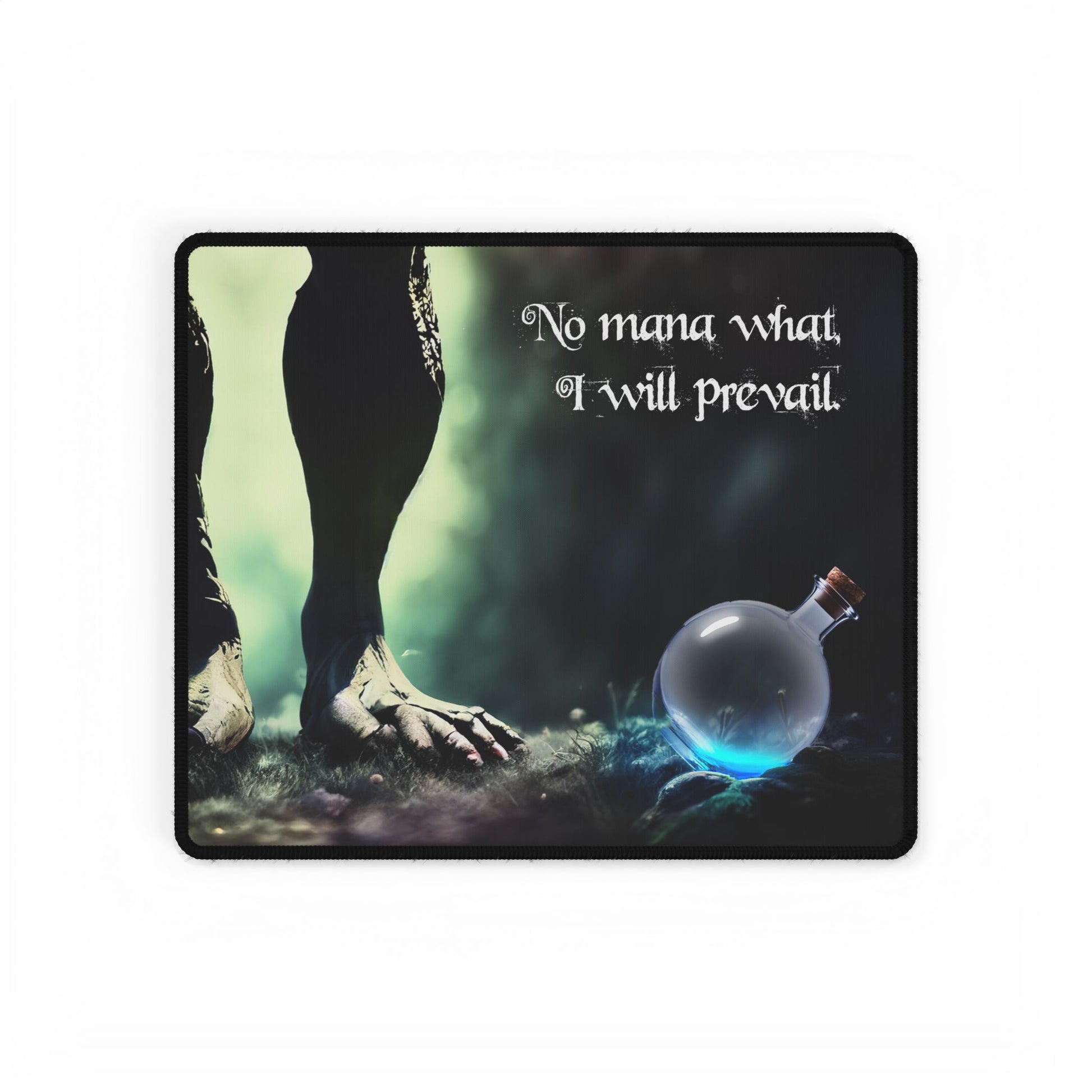 Give your desk a serious upgrade with the No Mana What, I Will Prevail gaming desk mat—because you might run out of mana, but style? Never.