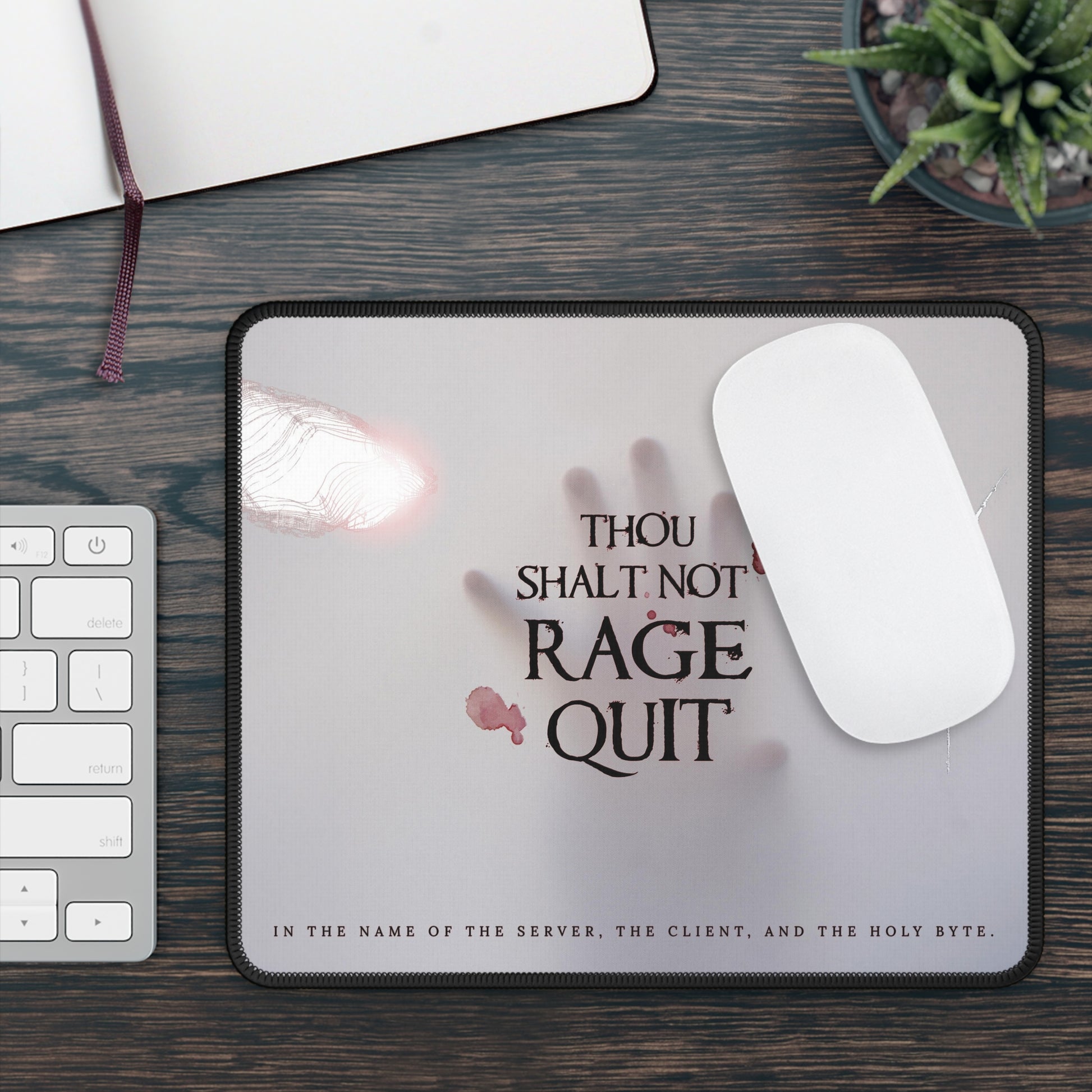 Thou Shalt Not Rage Quit—but this mouse pad totally gets it if you do. Built to handle even the fiercest boss fights, it’s here to keep your mouse movements smooth and your rage levels manageable.